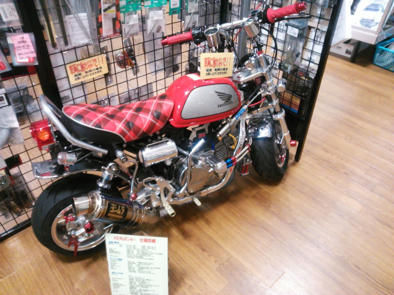 中は、バイクパーツがずらり